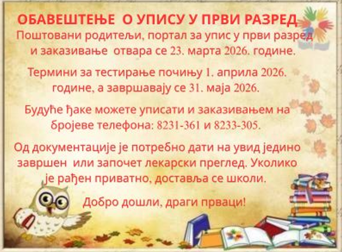 Списак уџбеника који ће се користити у школској 2026/2027. години можете преузети са следећег линка: